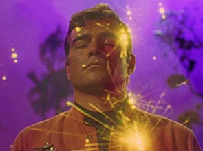 Cochrane's story gets even stranger with The Original Series episode "Metamorphosis," when several decades later, Kirk, Spock, and McCoy stumble upon a Zefram Cochrane who is alive and well. They learn that Cochrane in his last journey was nearly dead but was rejuvenated by a spiritual-like entity called "The Companion" which bestows everlasting life. It develops a special relationship with Cochrane and periodically envelops him, preserving his health and undoing the mortal effects of age. Spock describes it as "almost a symbiosis of some kind, a sort of joining," while Kirk says it's "like love." While being suspicious of it at first, they ultimately realize that it is truly beneficient being. The episode concludes with the Companion integrating itself into a willing human woman and becoming not only a spiritual but physical lover of Cochrane. It is quite an odd episode, but the Christ-like imagery is inescapable. Not only did Cochrane gain a "glorified" and immortal body like Christ, he is accompanied by a supernatural-like force that bears a curious resemblence to the Holy Spirit, a union which Cochrane says is "hard to explain" (not unlike the ineffable relations between the persons of the Trinity). Both the Companion and the Holy Spirit have a connection to love itself and give life to those it possesses (one physical and the other spiritual). Betsy Caprio (author of Star Trek: Good News in Modern Images) notes, "Pure consciousness -- here in the form of the mysterious female Companion -- is a good symbol of God." Those who are filled with the Holy Spirit become "lovers" of Christ, which is what we see reflected when the Companion joins with the willing female who then becomes the lover of Cochrane. These are strange but defining events for the character of Cochrane, as the episode in question was technically the first appearance of the character on screen. It seems even Gene Roddenberry originally designed this character to have both a worldly and almost otherworldly significance ... that is, both human and divine.
