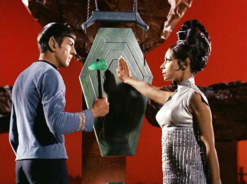 If one example could be highlighted up front regarding the show's ambiguity toward religion, one might again consider how it doesn't reveal any significant presence of religiosity among its main characters. Technically, however, as we will see, there are main characters who are most definitely religious (e.g. Spock, Worf, Quark, Kira, Sisko, Chakotay, Torres), yet all of them subscribe to various fictional belief systems. Does this mean anything? Is it meant to suggest that all humans in the future will "grow out" of the earth-originated faiths? Or is it fallacious to conclude that just because we don't see a certain character practicing a real religion means that they must not be practicing anything at all?